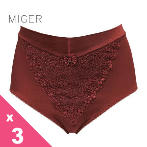 [MIGER密格內衣]塑感高腰蕾絲三角內褲-紅咖+黃色+粉色