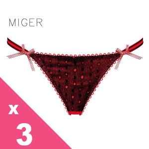 [MIGER密格內衣]側邊細帶網紗性感三角褲-紅色+葡萄紫+粉色