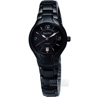 momo購物網-【羅梵迪諾_Roven Dino】城市風尚‧藍寶石鏡面黑鋼腕錶-玫瑰金 - 小(RD630B)