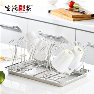 7net購物網【生活采家】廚房不鏽鋼12支瀝水杯架組(含瀝水盤)_0
