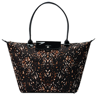 momo購物台,momo購物網:【LONGCHAMP】Le Pliage Fauve動物紋長把水餃包(中-黑X駱駝色1899561-578)