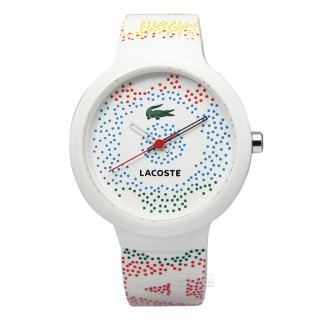 【LACOSTE】繽紛玩趣?普普風圓點矽膠腕錶-白(L2010531)