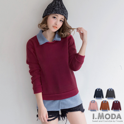 0304新品 暖感品味~內刷毛有領拼接假兩件上衣.5色
