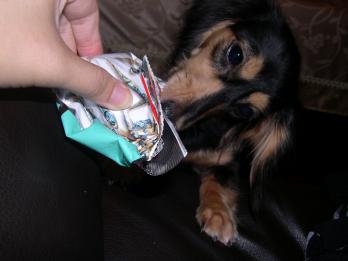 MOMO是隻非常膽小的臘腸 但個性傻傻的很可愛 每次只要媽媽開始倒飼料到碗裏 MOMO就會開始高興的跑出廚房向世界宣告一下 雖然我每次都要告訴她:外面沒有別人咧 (不像UME,眼睛決不會離開...