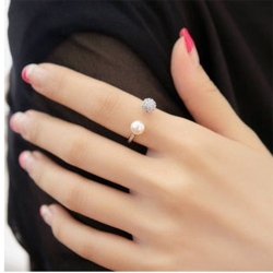 PS Mall 氣質珍珠水鑽雙球戒指指環尾戒開口戒指 G1414
