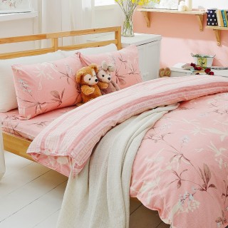 momo購物網-【美夢元素】精梳純棉雙人加大四件式全鋪棉兩用被床包組(葉語含情)