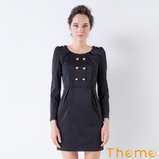 推薦momo流行服飾【Theme】風衣造型無領長袖洋裝(黑)