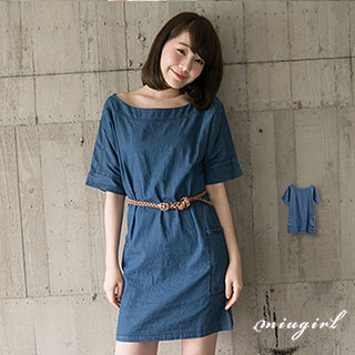 推薦momo流行服飾【MiuGirl】附皮帶大口袋牛仔連身裙