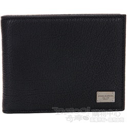 DOLCE & GABBANA 黑色金屬logo飾對折短夾 最受男性喜愛的簡潔設計款,自然皮紋與低調色澤,恰到好處的置放空間,