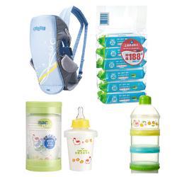 套餐內容: ◎時尚透氣揹帶/藍 X1 ◎三層保潔蓋奶粉盒 X1 ◎拋棄式奶瓶 X1 ◎超純水濕巾20片6入 X1