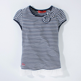 momo,momo購物台,momo購物網>【ELLE】女孩 甜美立體花朵條紋上衣(丈青)