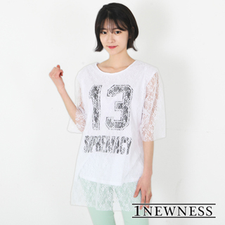 momo,momo購物台,momo購物網>【1NEWNESS】預購 長版蕾絲七分袖內搭無袖字母上衣(共2色)