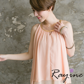 【Rayine 蕾依】金屬圍領雪紡拼接背心(高雅粉)