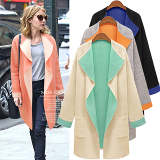 momo,momo購物台,momo購物網>【預購-911 korea】秀麗優雅˙雙色拼搭翻領口袋外套
