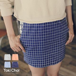 momo,momo購物台,momo購物網>【東京著衣】綴蕾絲格紋棉短裙-S.M(日系)
