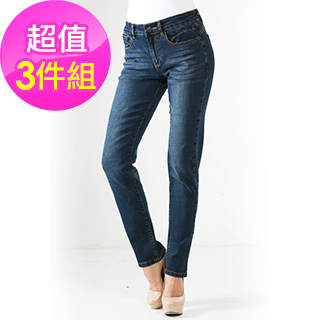 【Expose】顯瘦刷色美腿比例牛仔褲組(三件組_S-4L)
