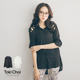 【東京著衣】交叉露肩前短後長雪紡襯衫-S.M(韓系)那裡買