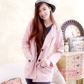 momo購物台,momo購物網:【伊莎貝拉】雙口袋連帽開釦外套A415(溫柔粉)