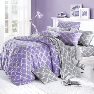 momo購物台,momo購物網:【GOLDEN-TIME】玩色北歐-精梳棉-雙人四件式-床包兩用被床包組(紫色)