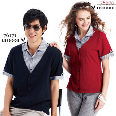 商品訊息描述: 【LEIDOOE】76270 酒紅搭配線條假兩件V領女款短袖POLO衫