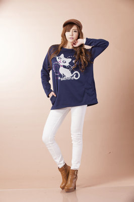 momo,momo購物台,momo購物網>【AYH】超保暖時尚貓咪刷毛上衣(深藍色.黑色) ★★★