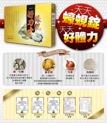 商品訊息簡述: 蠔精+蜆精+洋蔥市售最完美的結合天天「蠔蜆錠」天天好體力