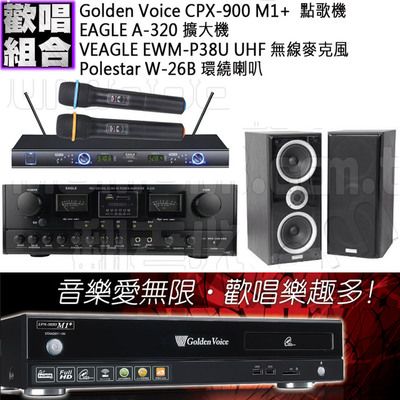 【送禮推薦】【金嗓電腦科技 M1+】EAGLE A-320+ EWM-P38U+ W-26B(點歌機+擴大機+無線麥克風+環繞喇叭)