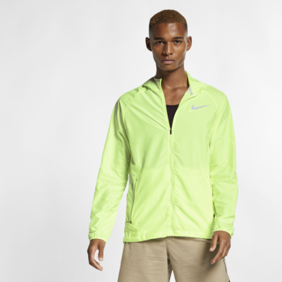 Nike Essential 男款跑步外套採用抗水材質,無畏風雨,即使突遇大雨依然能持續暢跑。附有扣環的彈性抽繩,確保轉頭時連身帽牢牢服貼不脫落。