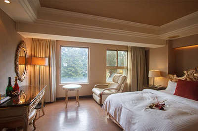 美滿雙人房地毯、法式家具與牆面色調搭配形成低調奢華,高質感椅面與枕頭套隱隱透著光澤,與床頭燈相照映房內角落,強烈的歐式風格讓你不用出國也能感受到國外風情。