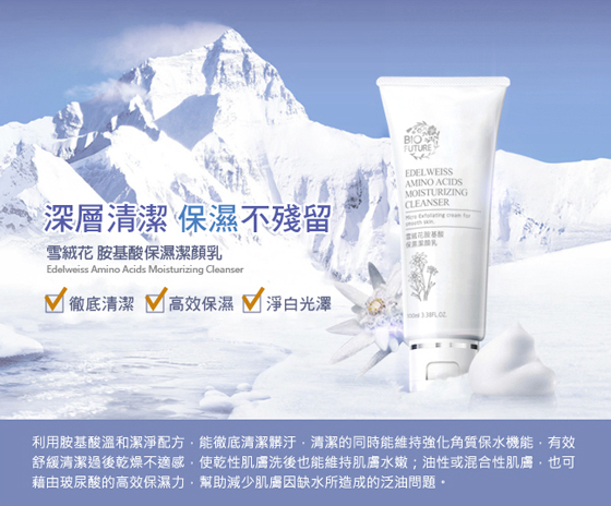 BIOFUTURE -雪絨花胺基酸保濕潔顏乳(100mL) 討論,推薦,開箱,CP值,熱賣,團購,便宜,優惠,介紹,排行,精選,特價,周年慶,體驗,限時