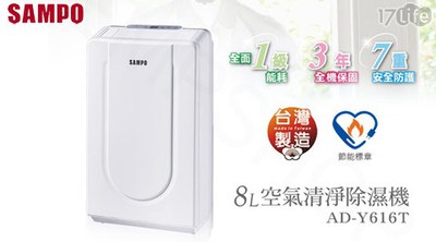 商場 聲寶SAMPO-一級節能 8L空氣清淨除濕機(AD-Y616T)1台-好康