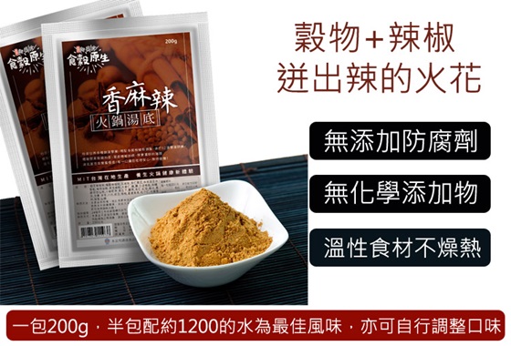 最近在網路上看到御復珍-食穀原生養生火鍋底粉/香麻辣火鍋底粉(200g/包) 覺得價格很實在 深得我心