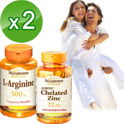 必買 CP值爆表【美國Sundown日落恩賜】威力情人組-(特極精胺酸x2瓶+甘胺酸鋅x2瓶)