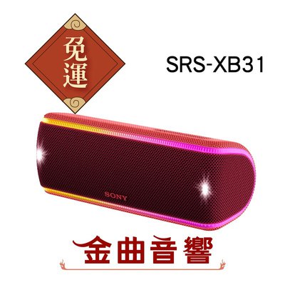 【2019流行商品】送束口袋 SONY 新款 SRS-XB31 紅 可攜式 防水 無線 藍牙 喇叭 - 金曲音響-爆買