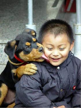 左邊的有眉毛的可愛小狗應該是羅威納Rottweiler吧!?