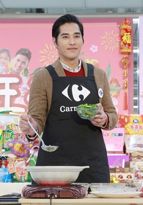 除了促銷優惠好康一波波,延續中元節廣告概念,家樂福新春再度邀請到藍正龍擔任新春廣告代言人,透過一家人辦年貨、準備年菜的過程,以「過年嘛」的期待與用心,成功詮釋藍正龍對家人的愛與體貼。平常因為家中有超強媽媽,只要等吃好料即可的藍正龍,在記者會現場也特別洗手作羹湯,端上他拿手的「魷魚螺肉蒜」、藍家過年餐桌上必吃的佛跳牆,和民眾提早分享過年喜悅。