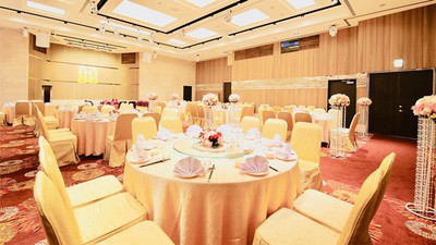 飯店二樓宴會廳可容納28桌寬敞空間,具備豪華婚宴場地規格,挑高格局展現磅礡氣息,讓婚宴形式不再受空間限制。結合最新科技絢麗光影效果,營造主題婚宴感官體驗,臻入化境的影音設備、多元彈性的宴會空間,無論舉辦婚禮文定儀式、新人派對均能深刻難忘。
