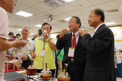 農委會黃金城副主委(右2)、茶改場蘇宗振場長(右1)品茗臺灣特色茶。