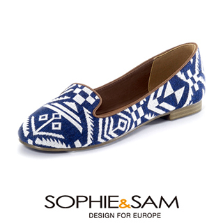 【Sophie&Sam】蒙德里安-幾何設計款布面平底鞋(土耳其藍)