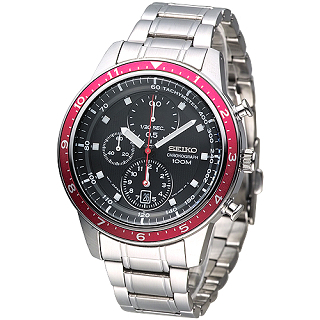 【SEIKO】卓越年代3眼計時男錶-黑/紅框(SNDF37P1)
