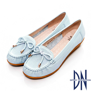 所以購買【DN】通勤首選 減壓全真皮蝴蝶結楔型包鞋(藍)就對了!