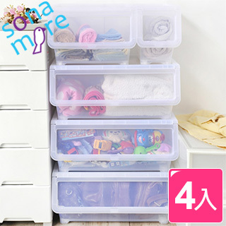 •  【SONA MORE】無印風特寬掀蓋式收納箱(4入)