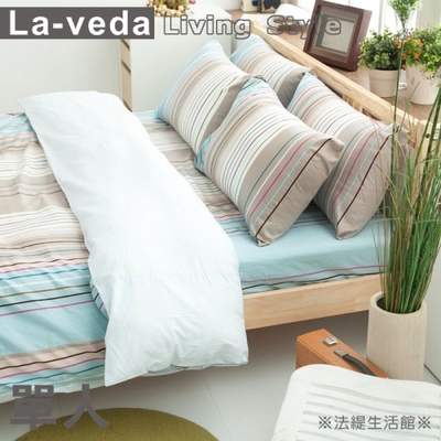 【La Veda】幸福彩條 藍單人三件式精梳純棉床包被套組