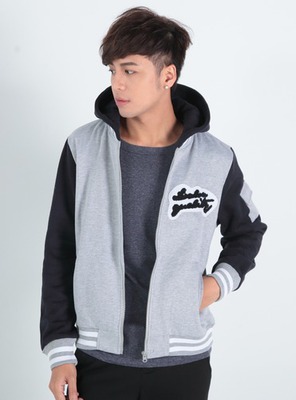 【本周限時刷卡優惠】挺版布標連帽棒球外套 (灰色) 29069 熱銷熱門商品