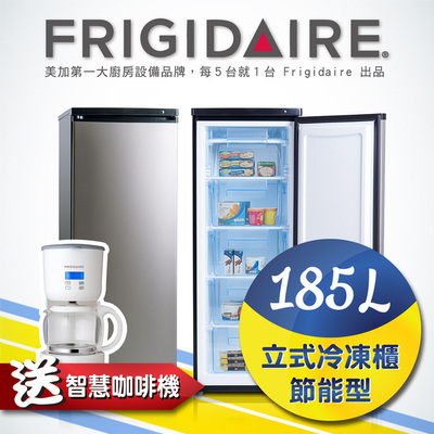 【團購熱門商品】【夏回饋★登錄送咖啡機 美國Frigidaire富及第】185L立式冷凍櫃 節能型 銀黑色 FRT-1855MZ(福利品)