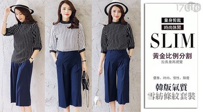 【比價】韓版氣質雪紡條紋套裝