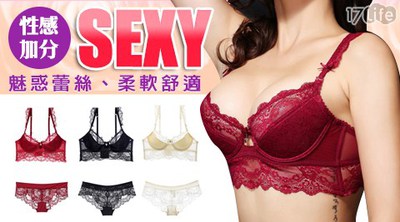 【比價】法式深情性感誘惑大尺碼透明蕾絲成套內衣-