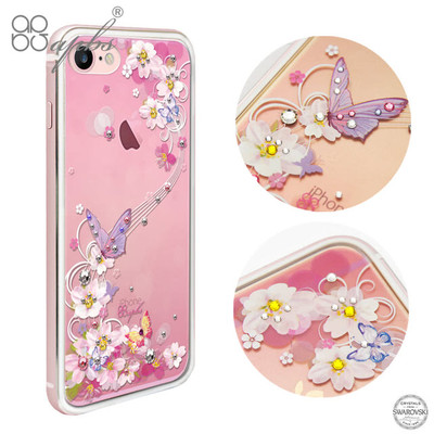 【特賣會】【apbs】iPhone 8-7 4.7吋 施華洛世奇彩鑽鋁合金屬框手機殼(玫瑰金迷蝶香)