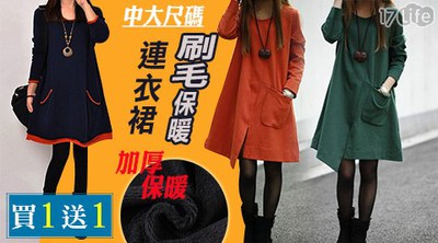 CP值爆表中大尺碼刷毛保暖連衣裙,買1送1!--紀念日禮物
