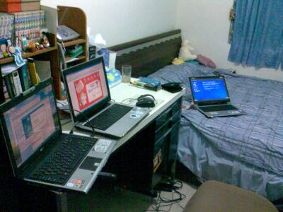 我哥的大事業 三台電腦在房間 其中一台是我的 對~我重灌了 好不習慣@@ 雖然很空 不過沒幾天又開始了XD 但是我沒有OFFICE@@ >>>早餐店的鄰...